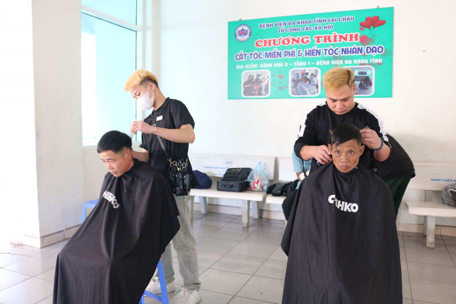 Cắt tóc miễn phí cho bệnh nhân và người nhà bệnh nhân tại chương trình