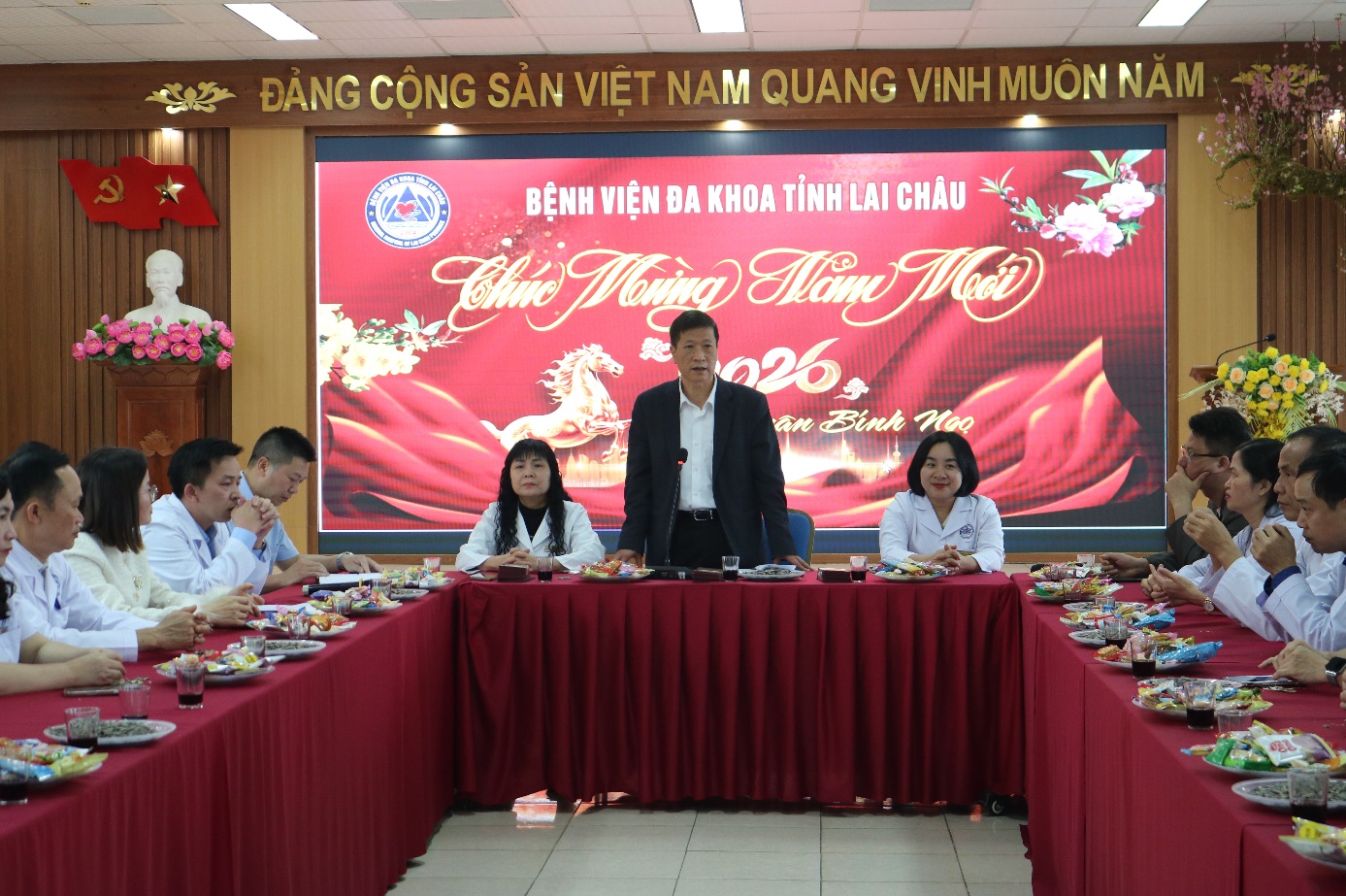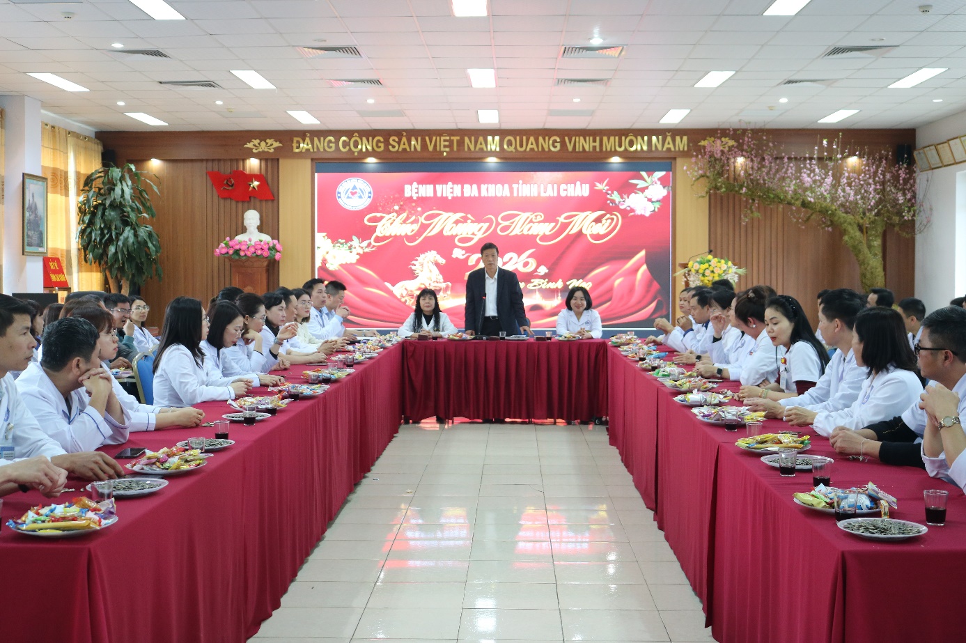 Bs.CKII. Đào Việt Hưng - Giám đốc bệnh viện Đa khoa tỉnh gửi lời chúc mừng năm mới tới toàn thể cán bộ, viên chức, người lao động đồng thời biểu dương tinh thần nỗ lực trong công khám bệnh, chữa bệnh và hoạt động chuyên môn năm vừa qua. Lãnh đạo Bệnh viện Đa khoa tỉnh nhấn mạnh năm 2026 sẽ tiếp tục là năm có nhiều nhiệm vụ quan trọng, đòi hỏi toàn đơn vị phát huy cao độ tinh thần đoàn kết, đổi mới và trách nhiệm để thực hiện hiệu quả các nhiệm vụ được giao