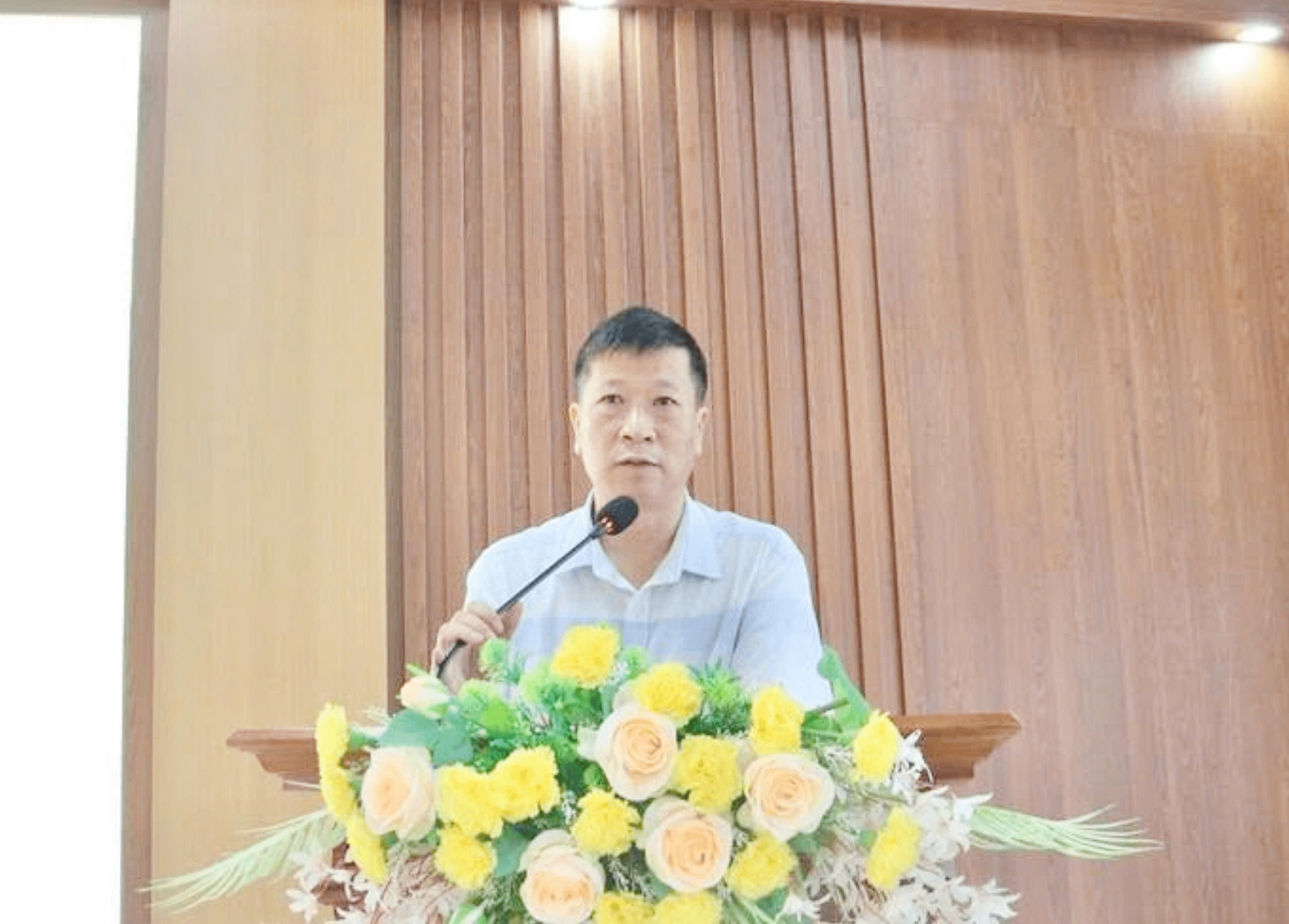 BS CKII. Đào Việt Hưng – Giám đốc Bệnh viện Đa khoa tỉnh phát biểu tại buổi lễ trao quyết định bổ nhiệm lại cho viên chức.
