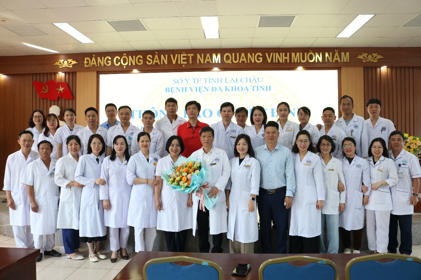 Tại buổi lễ, Trưởng Phòng Tổ chức hành chính đã công bố quyết định bổ nhiệm lại Giám đốc Bệnh viện Đa khoa tỉnh: BSCKII. ĐàoViệt Hưng, Bổ nhiệm theo QĐ 428/QĐ-UBND ngày 20/3/2026 giữ chức vụ Giám đốc Bệnh viện Đa khoa tỉnh trực thuộc sở Y tế tỉnh Lai Châu.