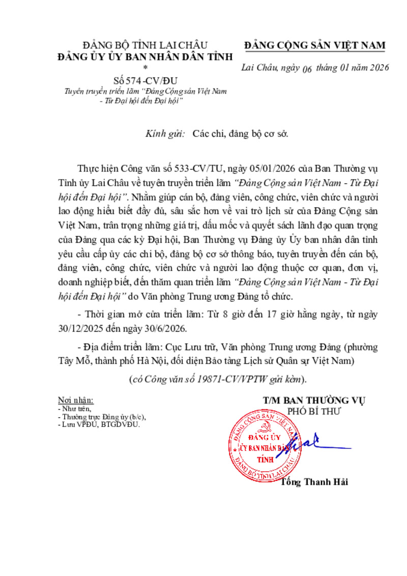 | Số hiệu | 574-CV/ĐU | Cơ quan ban hành | ĐẢNG ỦY ỦY BAN NHÂN DÂN TỈNH |