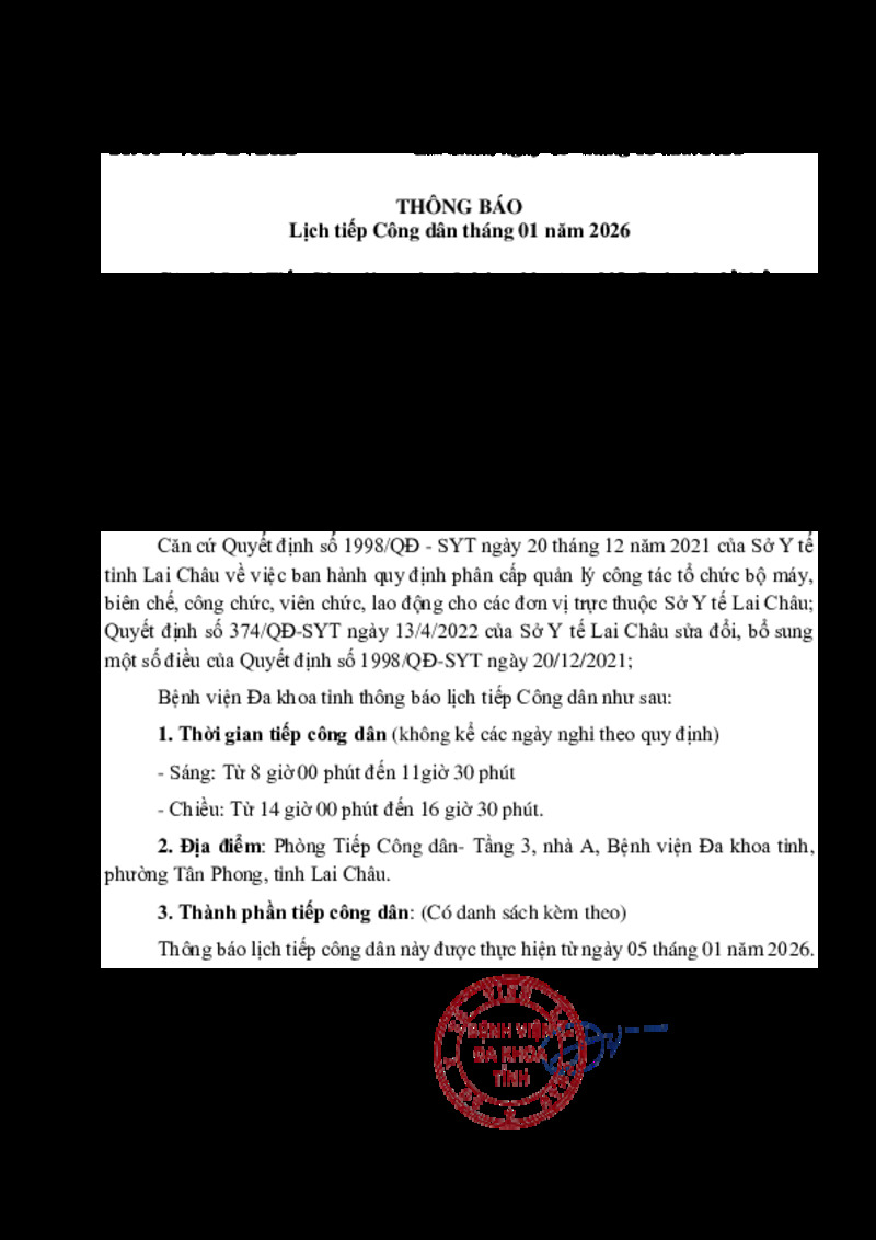 | Tiêu đề văn bản | LỊCH TIẾP CÔNG DÂN THÁNG 01 NĂM 2026 | ||